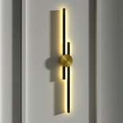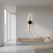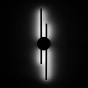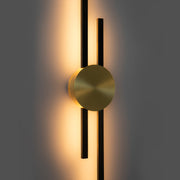 This Vertical Linear Wall Light features a slim wall mounted design with linear metal bars and a circular central accent. Provides ambient and decorative wall illumination for indoor residential use.